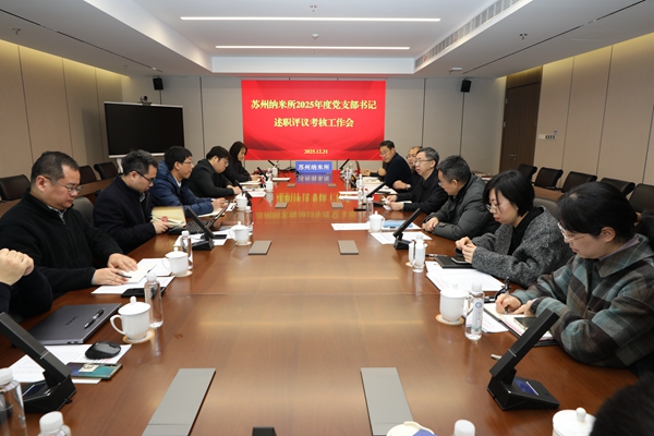 为深入贯彻落实党的二十届四中全会精神,在抢占科技制高点中充分发挥基层党支部战斗堡垒作用,12月31日,苏州纳米所党委组织召开2025年度党支部书记述职评议考核工作会,会议由党委副书记、副所长郑企雨主持,所党委委员、各党支部书记参加会议。